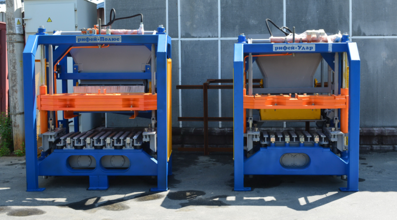 Рифей-Удар разработан на базе легендарного «Рифей-Буран». В Ударе применяется ударная вибрация, что обеспечивает высокое качество выпускаемой продукции. На Ударе изготавливаются стеновые и перегородочные блоки, тротуарная плитка, бордюры, декоративные изделия и элементы благоустройства.